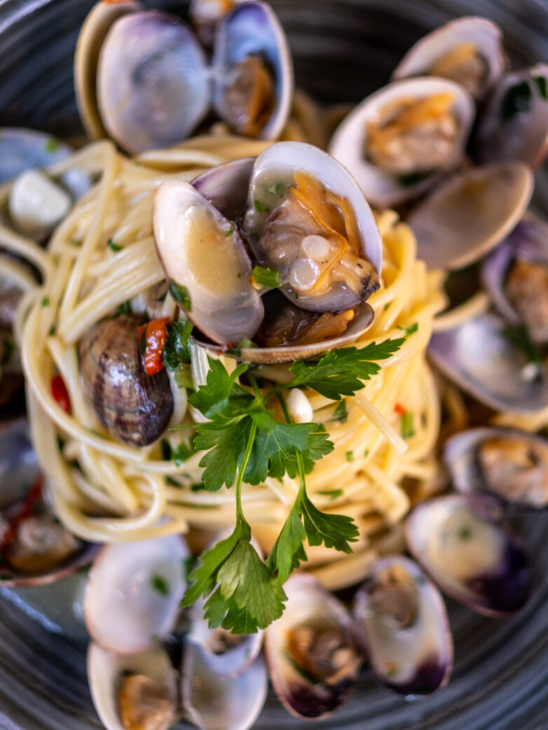 Die Karte ist überschaubar gehalten und wechselt regelmäßig. Sechs Vorspeisen, sechs Hauptgänge, wechselnde Empfehlungen – abhängig von Saison und Markt. Fisch, Fleisch, mediterrane Klassiker, hausgemachte Pasta. Pizza sucht man hier vergeblich – und das ist keine Lücke, sondern eine Entscheidung.