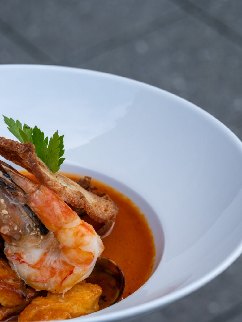 Nach einer umfassenden Renovierung eröffnete das Amoroso mit rund 60 Plätzen und einem eingespielten Team. Angestrebt war von Beginn an eine mediterrane, entspannte Atmosphäre, die sich selbstverständlich in das Umfeld einfügt – elegant, aber nicht steif. Ein Restaurant, in dem man ebenso gerne zum Lunch einkehrt wie abends an der Bar auf ein Glas Wein oder Champagner.