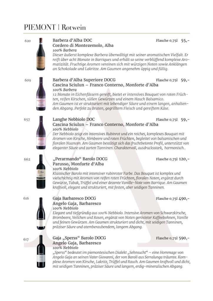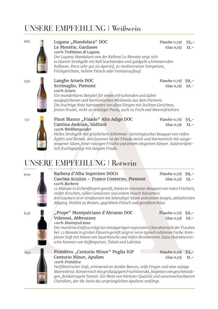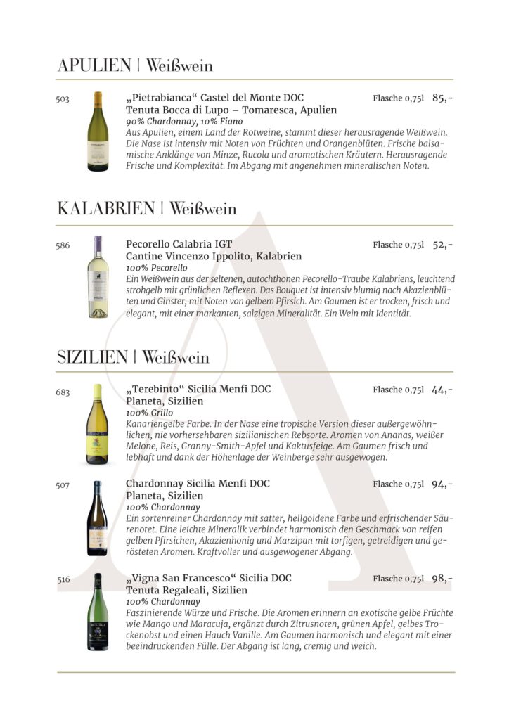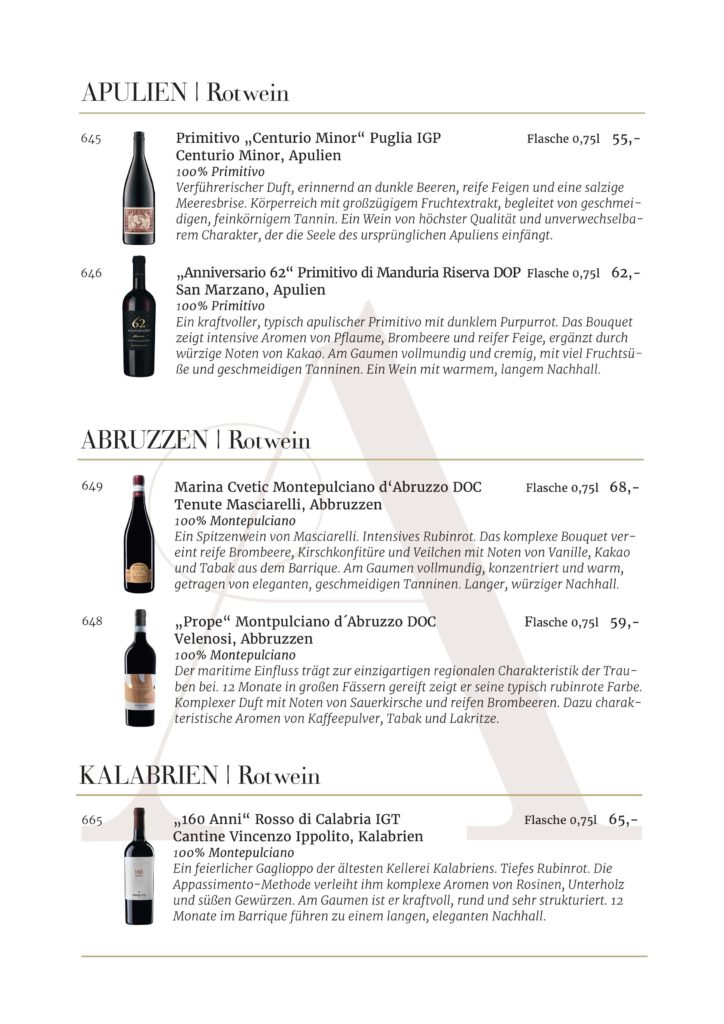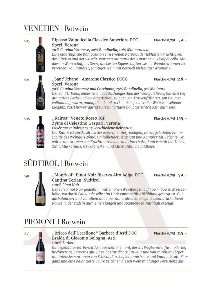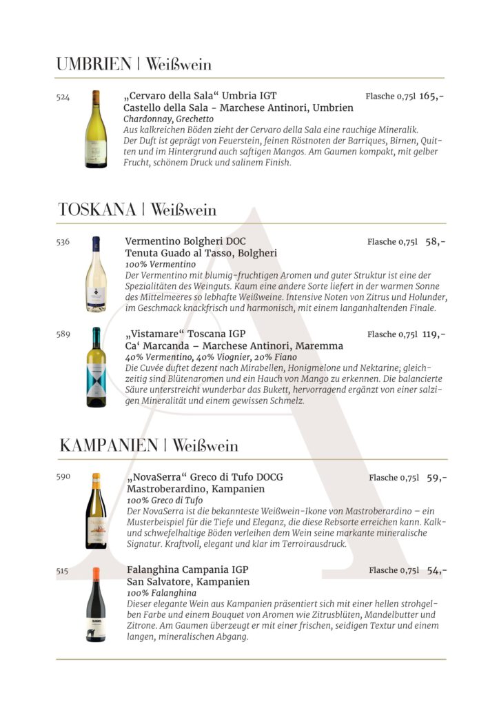 Jede Kellerei und jedes Etikett, die in unserem Restaurant AMOROSO an der alten Oper vertreten sind, wurde sorgfältig für unsere Gäste ausgewählt. Wir sind stets auf der Suche nach den besten Weinen .