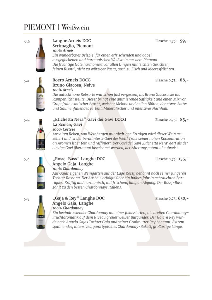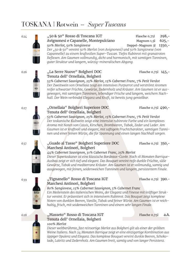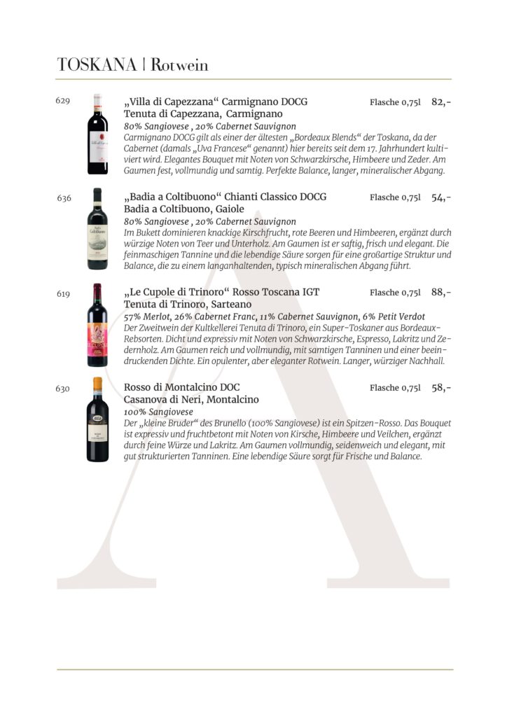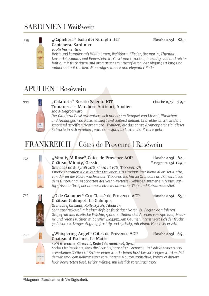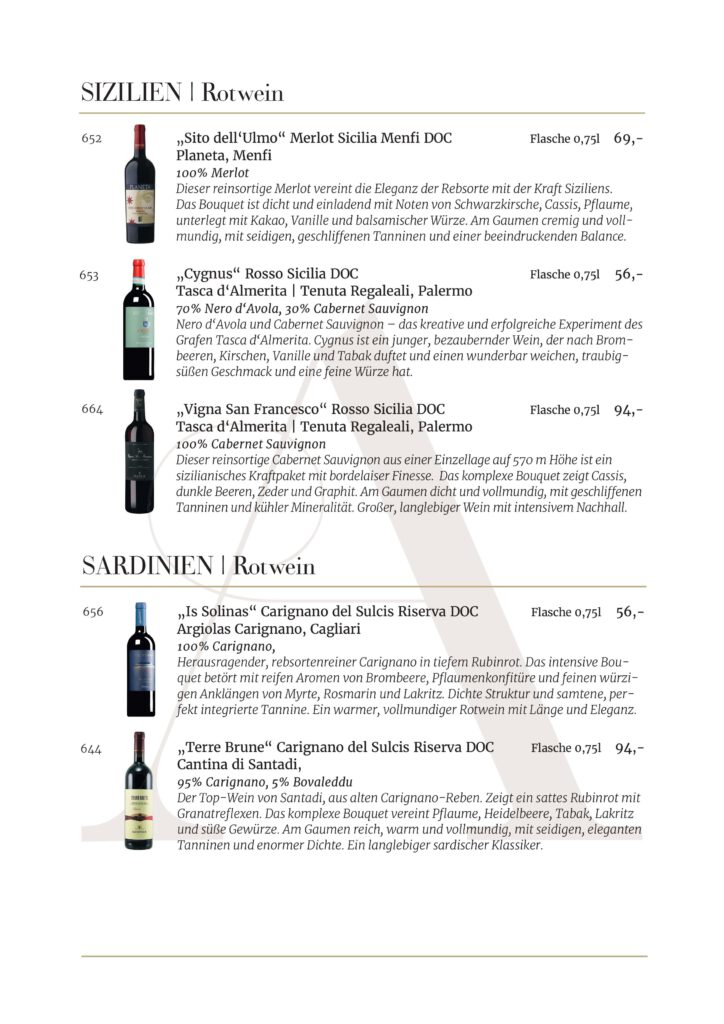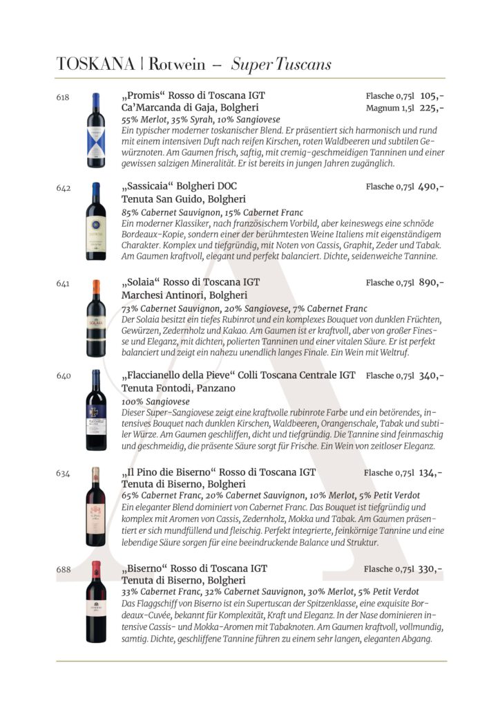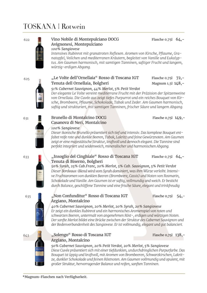 Jede Kellerei und jedes Etikett, die in unserem Restaurant AMOROSO an der alten Oper vertreten sind, wurde sorgfältig für unsere Gäste ausgewählt. Wir sind stets auf der Suche nach den besten Weinen .